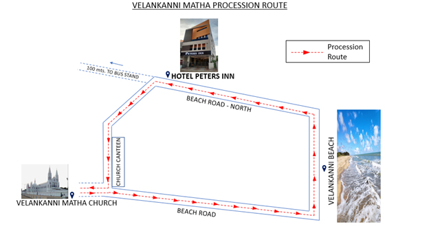 Located in a serene environment, situated in between the world famous velankanni church and beach, enroute the procession of our lady of health Velankanni Matha. It is also very close to the bus stand and rail way station. Only a few meters walk to all these places.